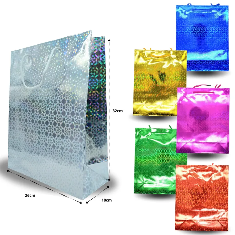 B – 022 bolsa de regalo acabado metálico colores surtidos 26x32x10cm C/12 1252-1C-5