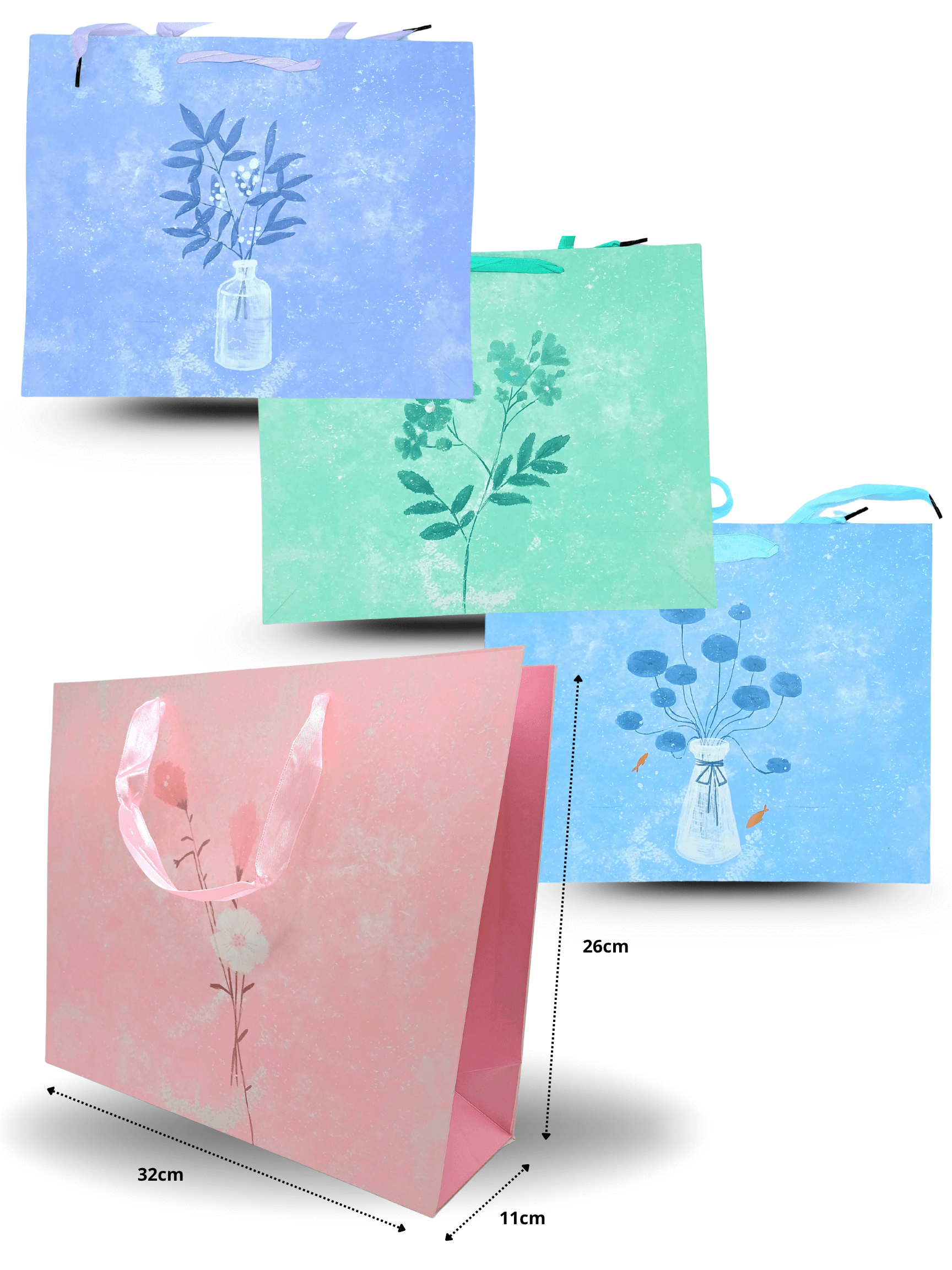 B – 045 bolsa decorada boutiquera colores pastel flor 32x26x11cm o lisa rayas C/12 BPA-C0122