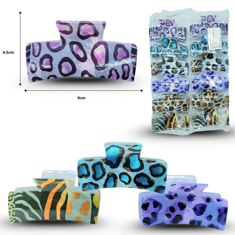 F – 002 pinza para cabello rectangular animal print 9cm C/12 25Z-25