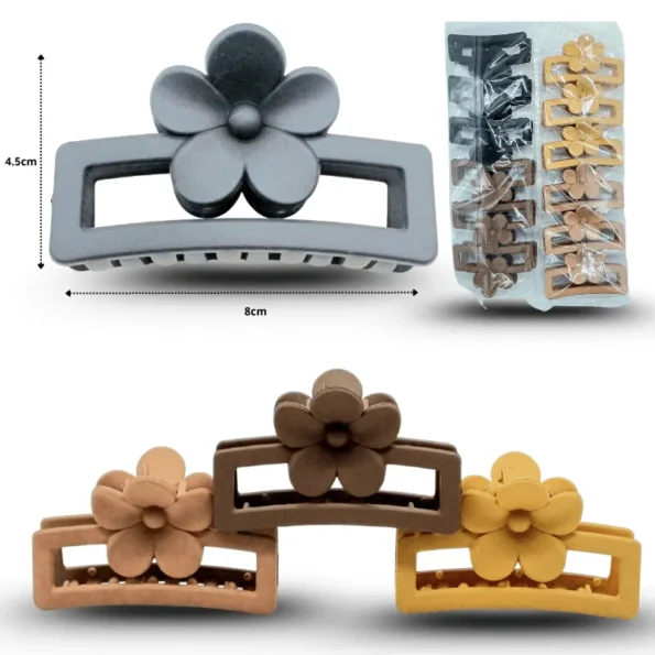 F – 107 pinza de cabello rectangular con flor colores tierra 8cm C/12 EEO163