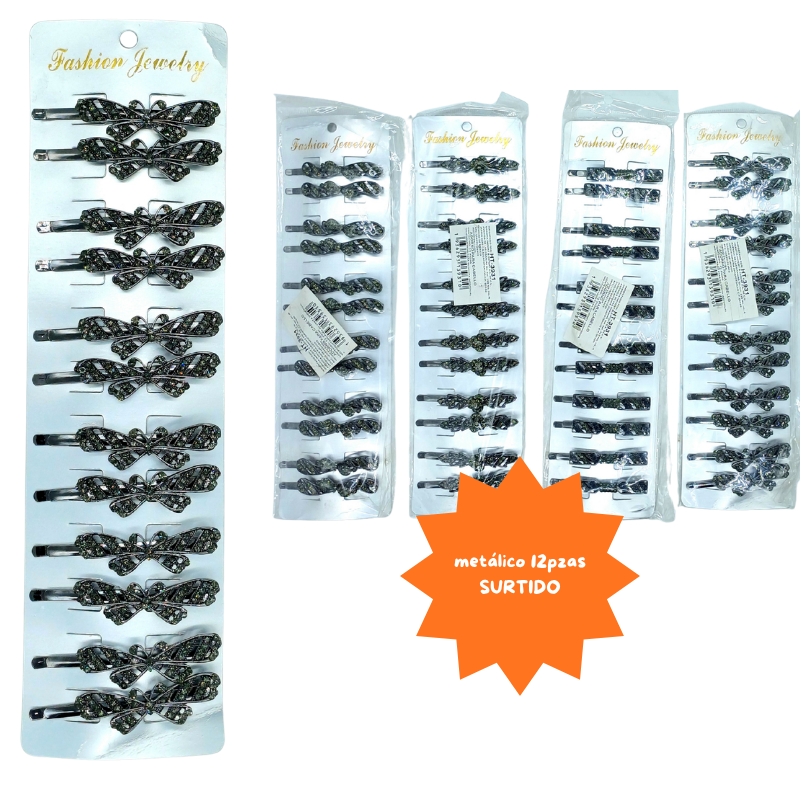 J – 001 pasador metalico con pedreria C/12 HT-3931