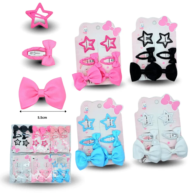 J – 001 pico moño par con cuca moño par y cuca estrella par set 6pzas C/12 HG25T-34