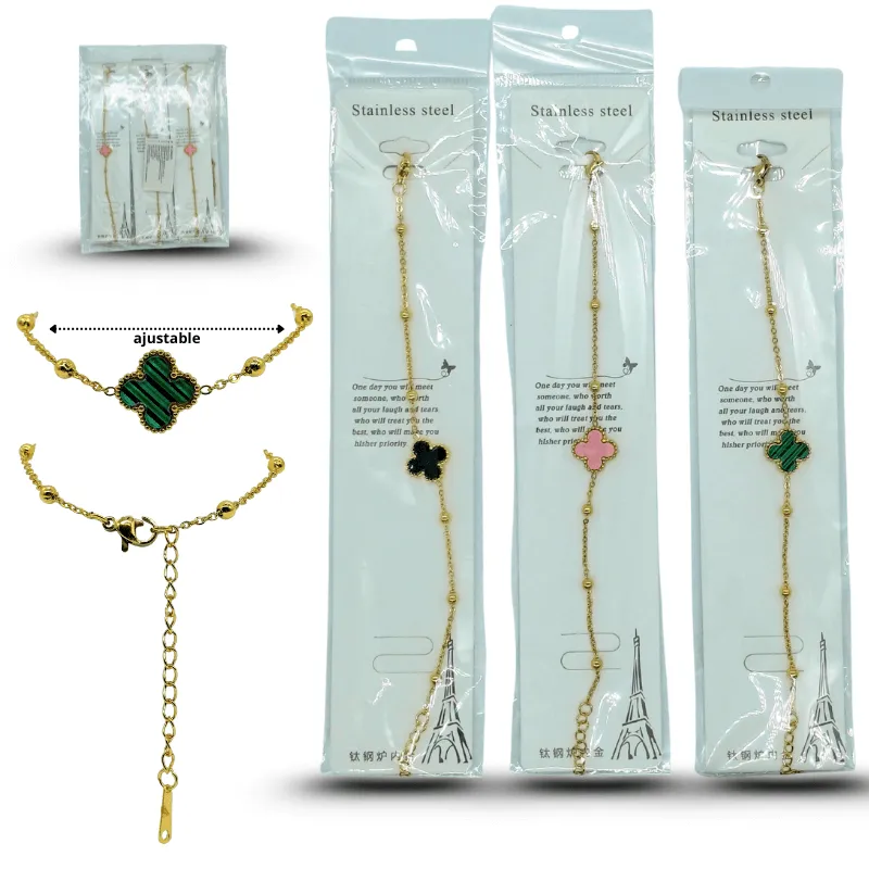 K – 021 pulsera trebol con cadena en blister individual C/12 25P177