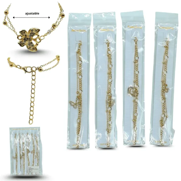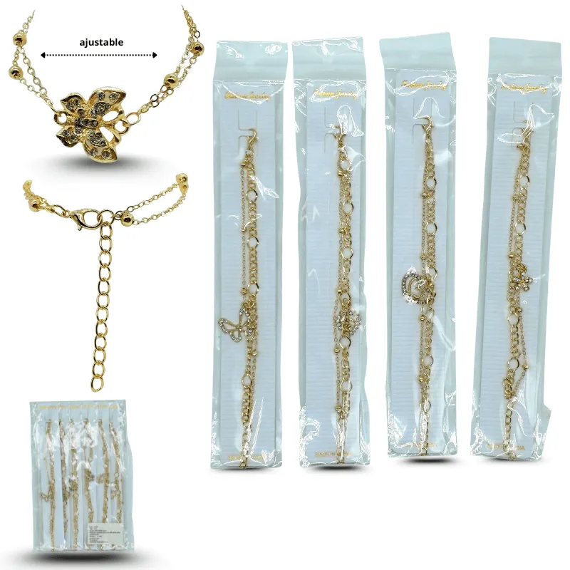 K – 097 pulsera cadena doble con dije brillos blister individual C/12 25O-61