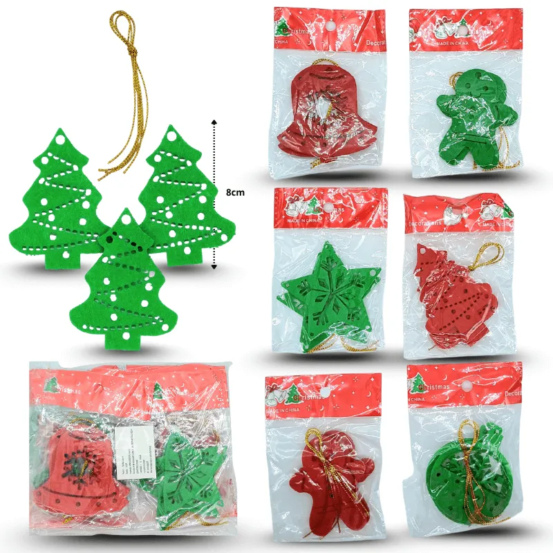 N – 061 decoración colgante navideño fieltro set 3 pzas C/12 25Q-77 o R-32