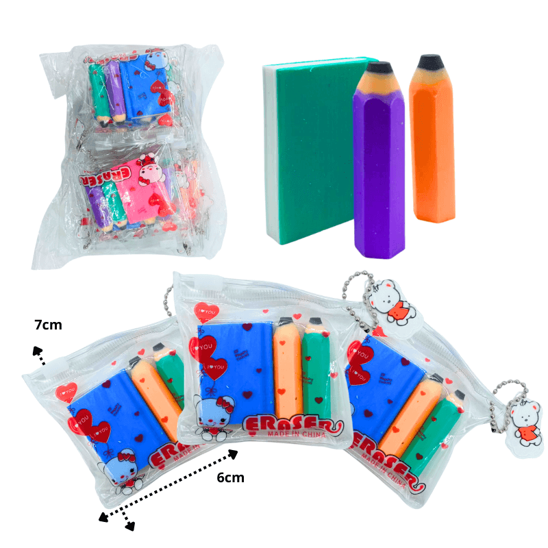 P – 038 goma borrador libro y lápiz en bolsita cierre a presión set 3 pzas C/12 25Z-118