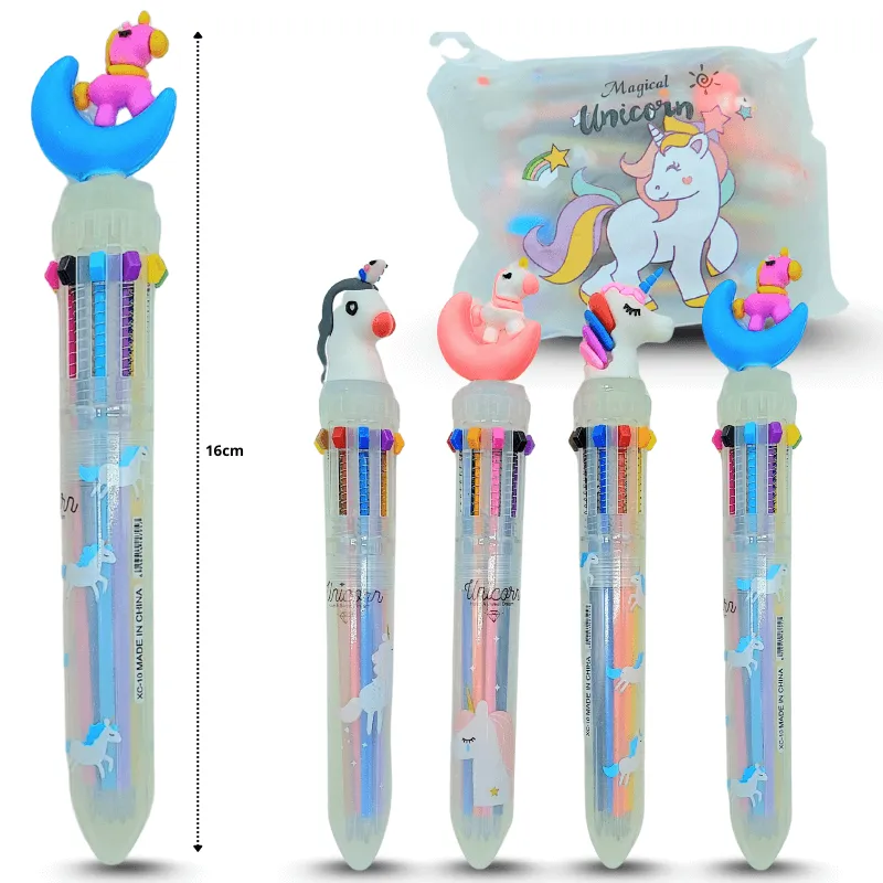 P – 062 pluma 10 tintas unicornio en bolsa decorada C/12 ALB MOR