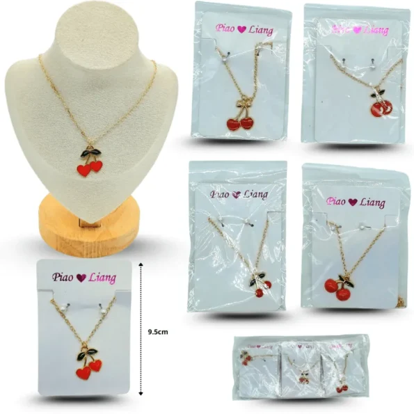 S – 002 collar cereza con par de broquel set 2 pzas C/12 JNAC-56 $90.00 Costo por paquete