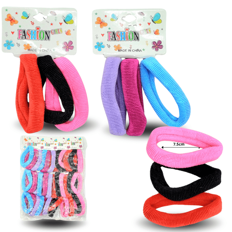 V – 458 liga textil corrugada 7.5cm morados y fucsias set 3 pzas C/12 G6517
